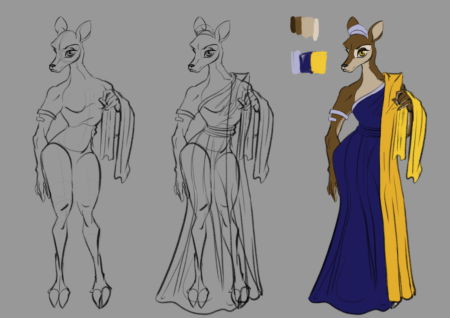Sur un extrait audio de Webserie se nommant "Olympe compagnie" des studios GRIZZ ARTLe but, créer un personnage anthropomorphe avec un design inspiré du personnage original de la webserie et des traits principaux du film "Bambi", afin de réaliser une animatique puis un rough avec ce design. Le personnage choisis ici parmi les deux est Héra.